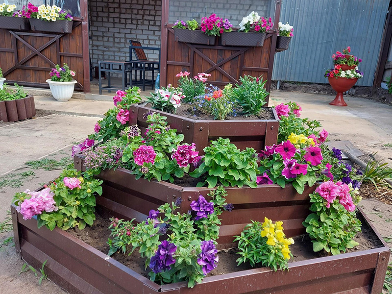 Посмотрите, как выглядят грядки и клумбы на участках.